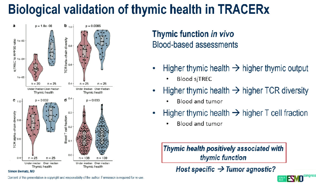 这些结果提供了证据,表明胸腺功能可能是一种新型的、非侵入性的精准生物标志物,可用于指导治疗决策。