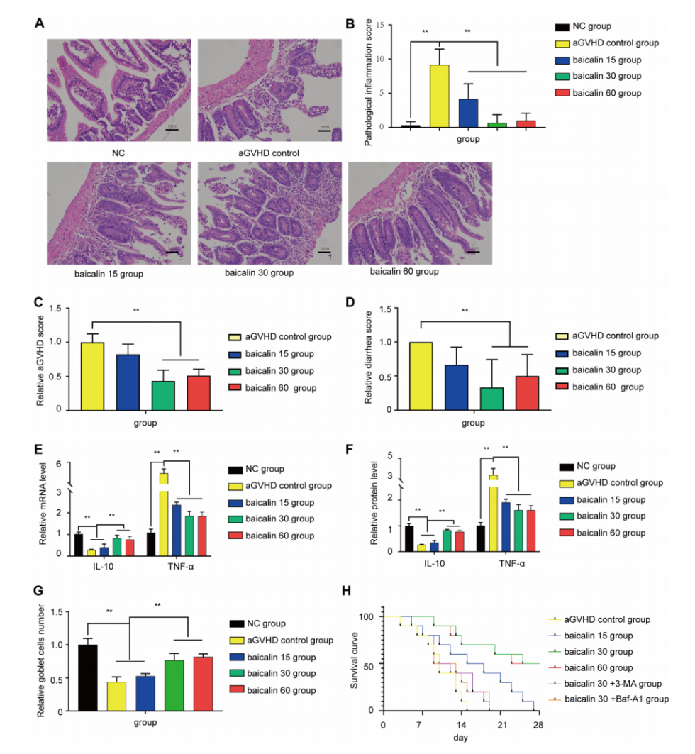 图2. 黄芩苷降低小鼠移植后肠道aGVHD的作用机制